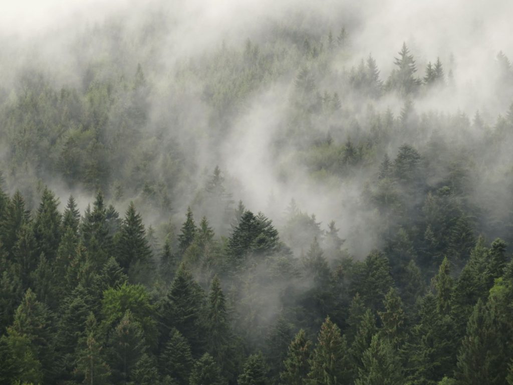 1. Wenn die Umgebungsluft kälter als der Wald ist, zieht der Nebel ins Tal und streift den Wald.